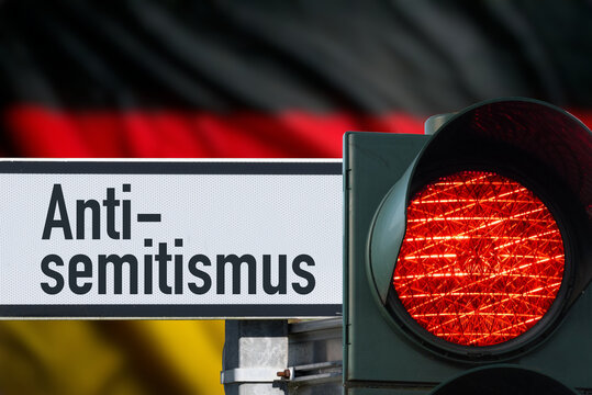 Deutsche Flagge und rote Ampel als Symbol für den Kampf gegen den Antisemitismus in Deutschland