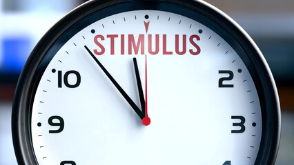 Stimulus that is going to happen soon. Incoming stimulus, approaching in the near future. Stimulus almost here, in a short time - a clock symbolizes a reminder that stimulus is near. ,3d illustration