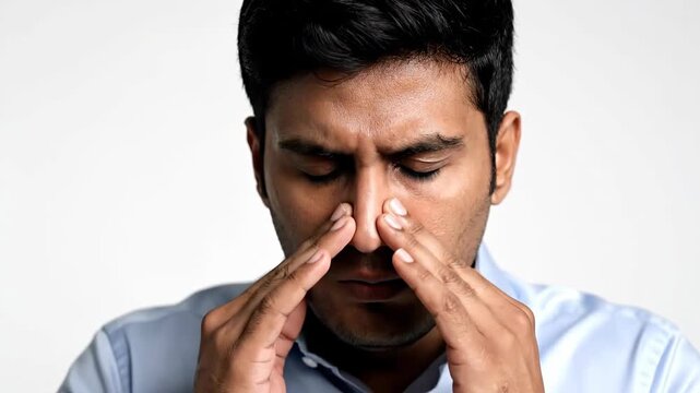 A Person Reacting To an Unpleasant Smell, Grimacing and Holding Their Nose With Disgust