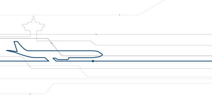 Avia transport. Airplane outline illustration for your project. Gray and blue lines image on white background. Vector design art