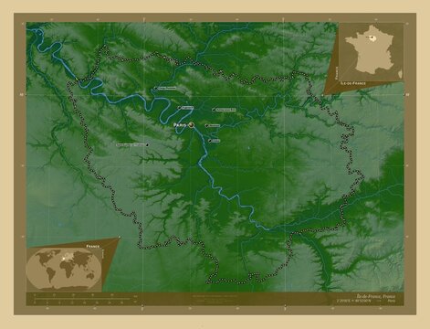 Ile-de-France, France. Low-res satellite. Labelled points of cities