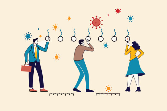 Social distancing, people in medical masks practice social distancing to protect against the concept of the spread of the COVID-19 coronavirus outbreak, avoid social contact.