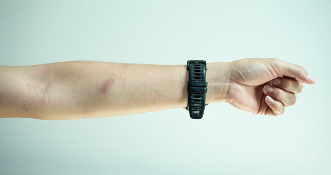 Cropped shot view of woman showing her arm after she feel itching from mosquito bites. Avoid scratching, as this can worsen the irritation and potentially lead to infection.