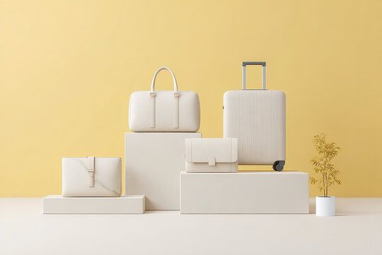 create photorealistic ultraminimalist image featuring contemporary fashion displayed on neutral backgrounds