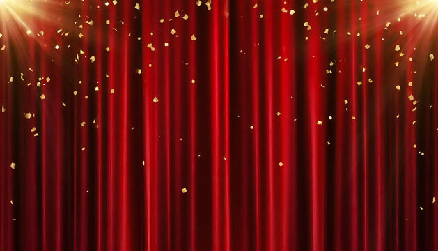 Golden star glitter light red stage award ceremony concept background celebration recognition achievement glamour event performance.