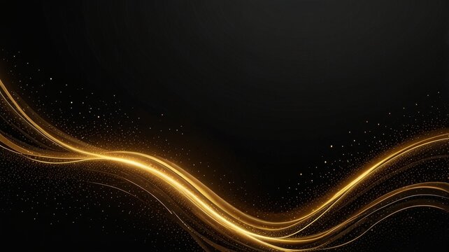 Abstract elegant dark blue background with golden curved line and lighting effect. Luxury template celebration award design.