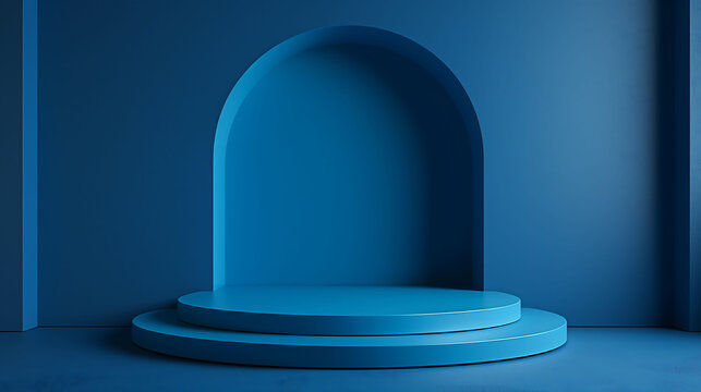 Set of blue realistic 3d podium, products display, stand for cosmetic products, stage showcase on pedestal, promotion display