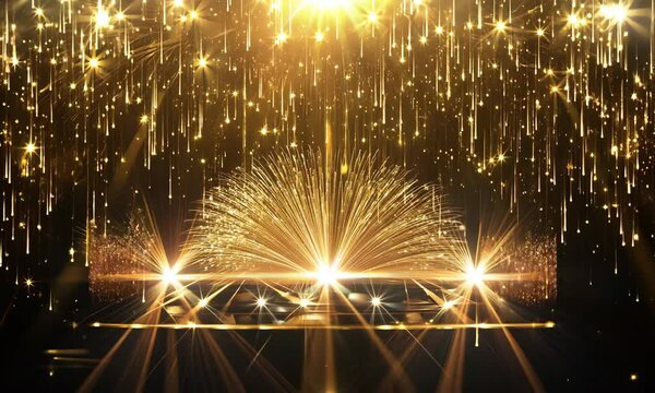 Award party stage golden stage glitter animation. stars, lights and particles. Luxury gold light streak. Particle, luxury awards ceremony background