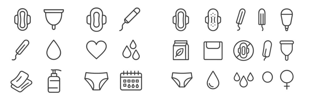 Menstrual health products and symbols illustrated in a minimalist style for educational purposes and awareness campaigns