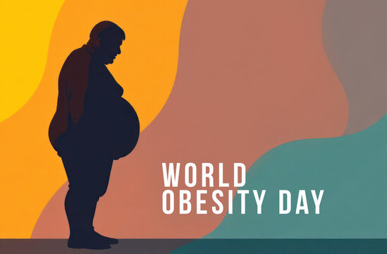 silhouette of person with obesity against colorful abstract background. world obesity day awareness concept. health and wellness promotion. design for poster with copy space.