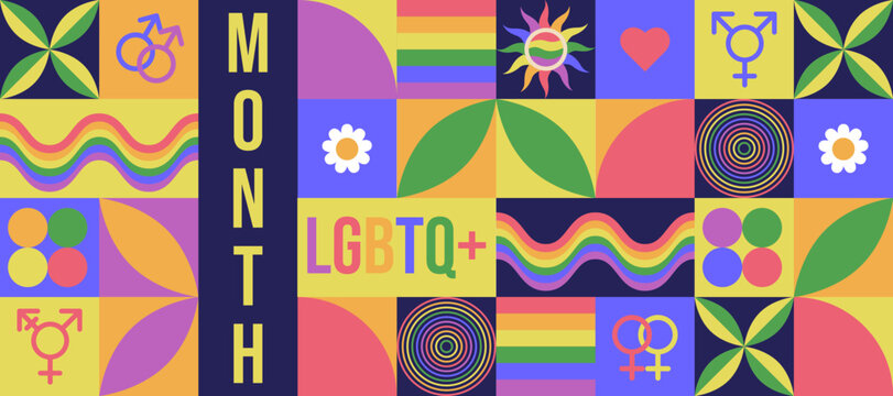 Geometric LGBTQ Pride mosaic holiday banner