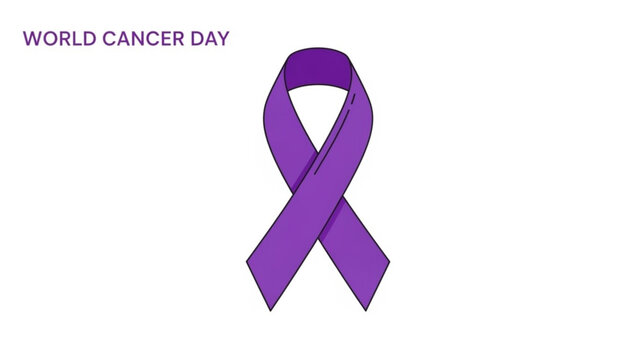 A purple ribbon symbolizing awareness for cancer on World Cancer Day
