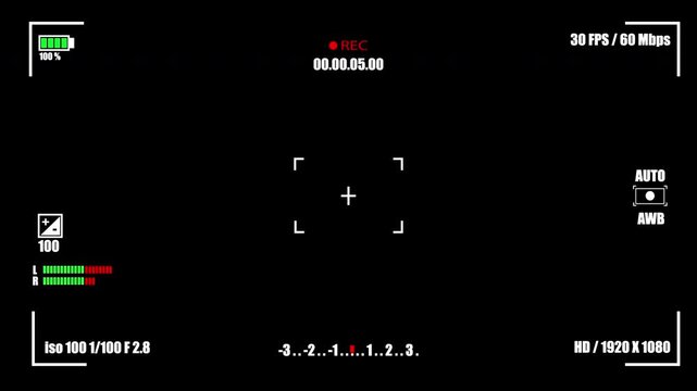 Camera Viewfinder Interface Displaying Recording Settings and Focus Indicators.Alpha Chanel. The background can be remove using a blending mode like add.