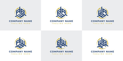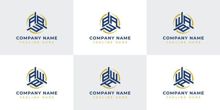 Letter ABW, AWB, BAW, BWA, WAB, WBA Hexagonal Technology Logo Set. Suitable for any business.