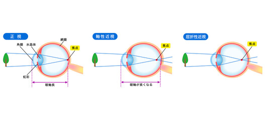 目の構造 正視 軸性近視 屈折性近視 視力