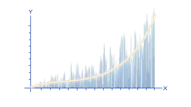 Bar chart showing exponential growth over an Xaxis fitted with a curved line
