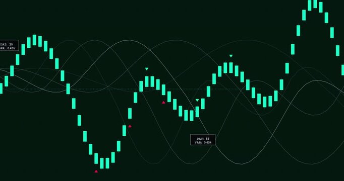 Data starting teal bars forming wave on transparent bg cursor sweeping revealing sine marking spike