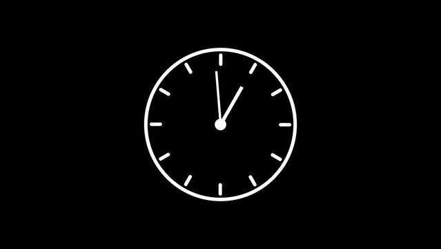 Animated wall clock in 60 second loop. Clock with moving arrows. Time lapse loop. Alpha channel on black background for locking. Black minute and hour hands with second pointer, 4K Quality Video