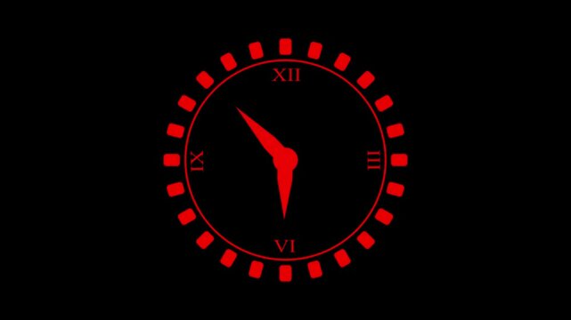 Glowing neon line Analog clock spinning animation loop, alpha channel included.