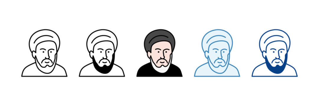 Symbole de la religion musulmane chiite avec un Ayatollah qui prie et prêche devant ses fidèles en tendant un doigt vers le haut.