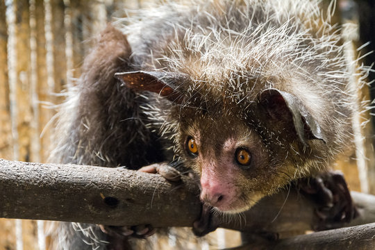 The aye-aye (Daubentonia madagascariensis), a beautiful nocturnal lemur in Madagascar
