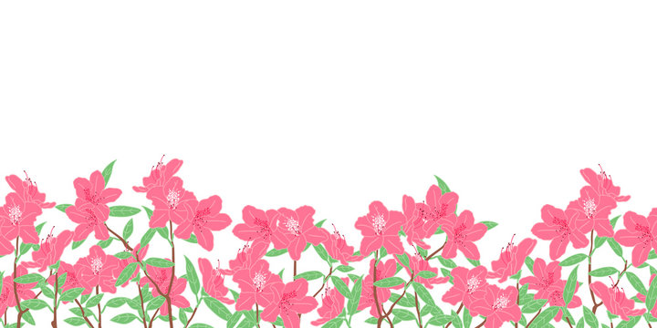 Romantic pink azalea flowers or rhododendron blossom in spring background and borders. Floral frame border seamless pattern. Great for wallpaper, wedding or valentine's day card, invitation.