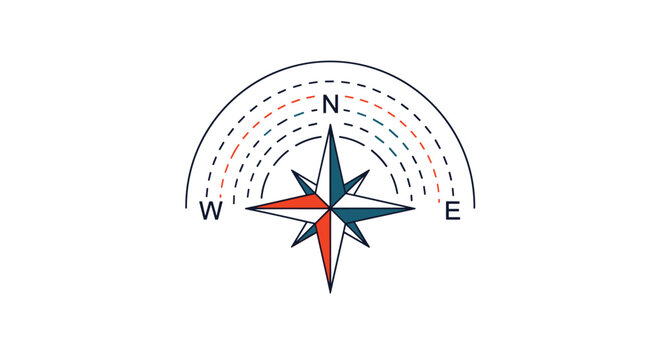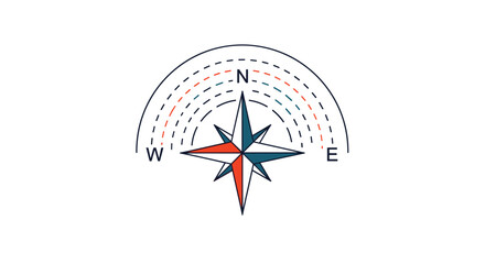 A simple, elegant image of a compass with clear lines on a white background. Ideal for navigation apps and travel services. Generative AI