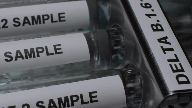 Delta B.1.617.2 Indian Variant Test Tube Vials Taken Off In Rack. Locked Off