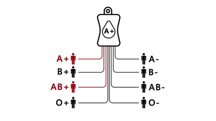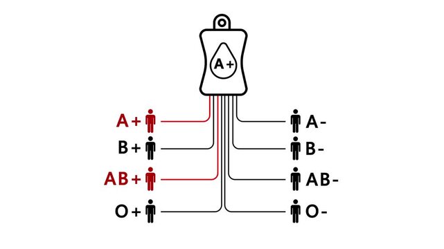 Blood Group Compatibility Charts Video. Donor & Recipient Diagrams for A+, AB+, A-, B-, AB-. Full ABO/Rh Factor Transfusion Infographics.