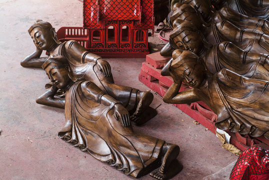 buddha wood carving at Baan Tawai Village near Chiang Mai