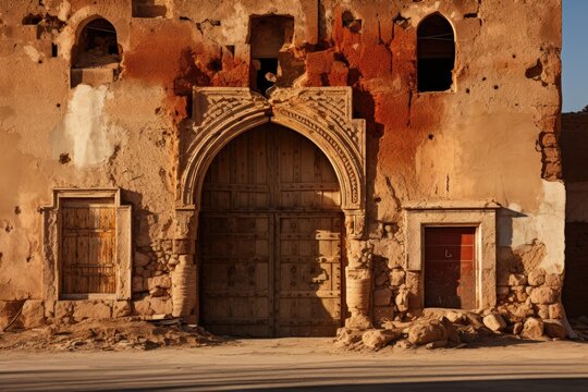 Marrakech, Morocco, the old walls of the city, such as the door of Bab AgNaou., generative IA