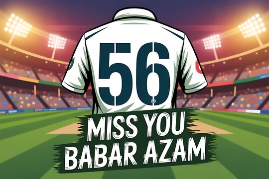Cricket fans express longing for Babar Azam with stadium illustration, jersey number 56, illuminated floodlights, emotional tribute