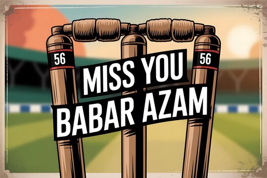 Cricket stumps with "Miss You Babar Azam" text, a tribute to a beloved player with a vintage, nostalgic feel, perfect for sports fans