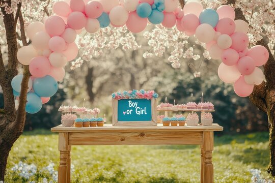 Beautiful Outdoor Gender Reveal Party with Pink and Blue Decorations