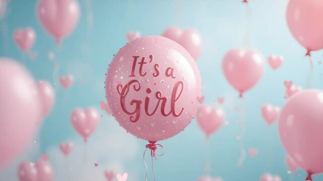 It's a girl baby shower balloons pink hearts celebration announcement party reveal decoration decor