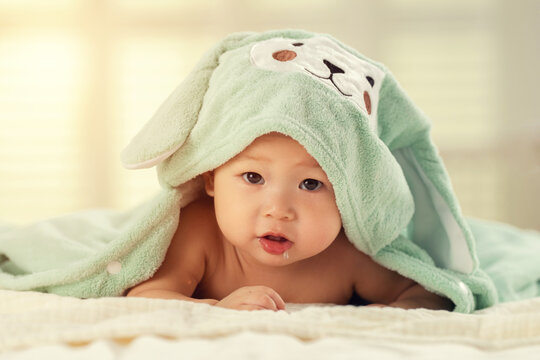 New daddy snuggles and loves on his brand new baby boy while holding the tiny infant on his arms. Instant love between a father and child. Father in awe of his little child.