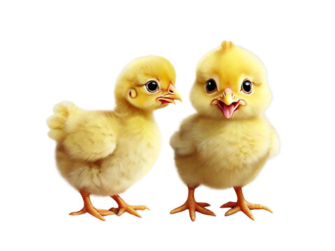 Two small chickens isolated on white background
