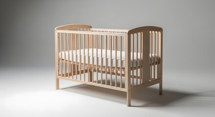 White wooden baby crib isolated on white background