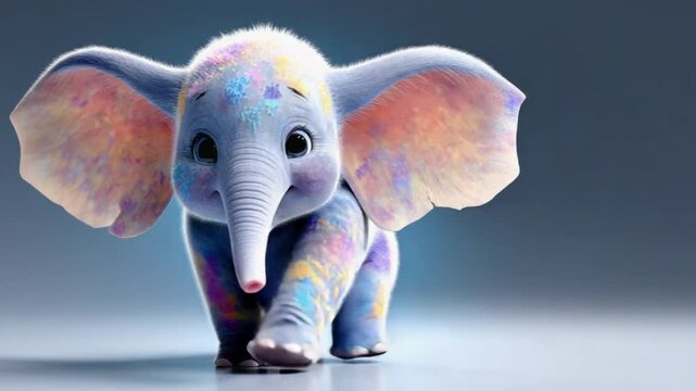 Adorable Baby Elephant with Colorful Paint Splatters Running Towards the Viewer