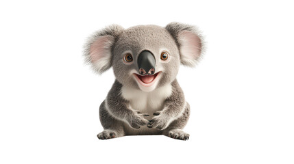 Realistic 3d render of a happy, furry and cute baby Koala smiling with big eyes looking strainght