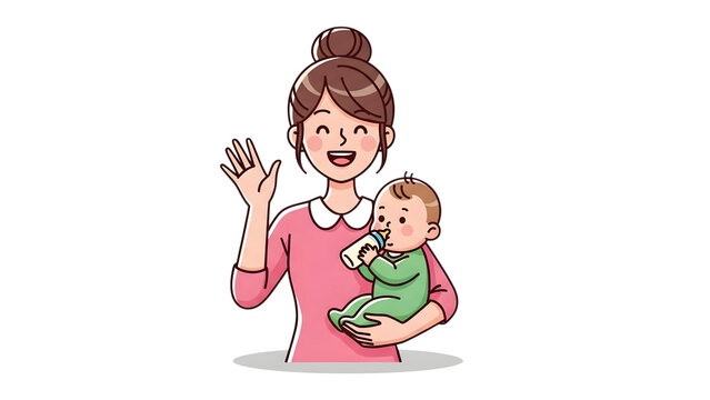 Cartoon mother feeding baby with bottle illustration for motherhood and parenting concept design vector 100 on transparent background