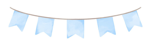Cute pastel blue triangle party bunting. Baby and kids party decoration. Water color illustration.