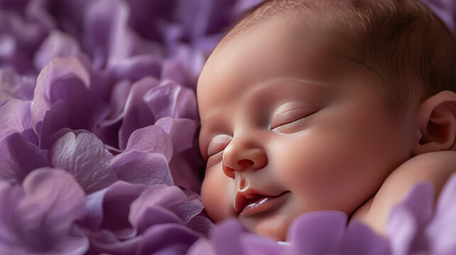 A baby on the petals of a purple flower -World Prematurity Day concept