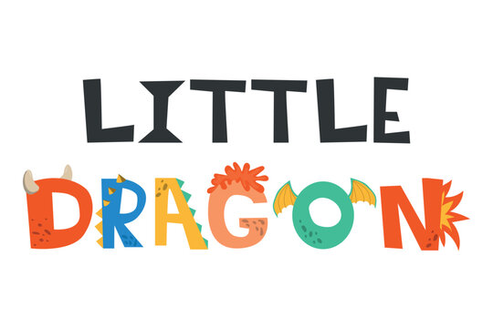 Little dragon lettering. Vector illustration in cartoon style. Childish design for birthday invitation or baby shower, poster, clothing, nursery wall art, and card.