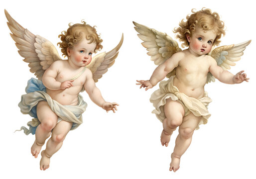 cupid flying overhead shooting his arrow vintage illustration isolated on a transparent background, generative ai