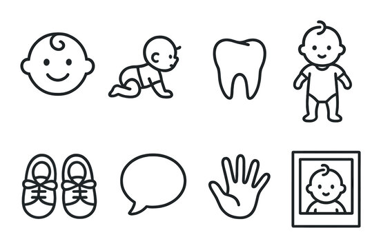 Baby milestone icons set – silhouette, first year and developmental symbols