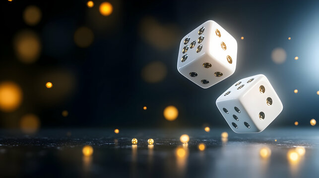 A neon 3D render of a casino game with cube dice set against a dark bac Random numbers are moved by the rolling of two w Night banner for online 3D illustrations of Vegas, VIP gaming, and board games