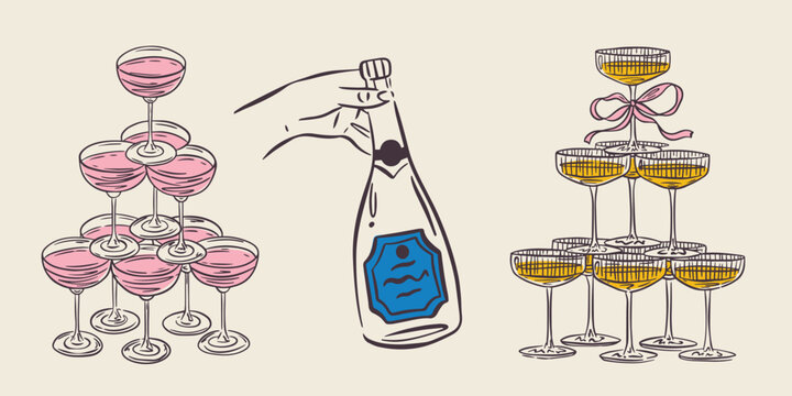 Whimsical hand drawn bar menu illustrations in trendy whimsical style. Perfect doodle for quirky italian wedding holiday, poster, dinner and bar menu, bachelorette party, birthday invitation, sign.