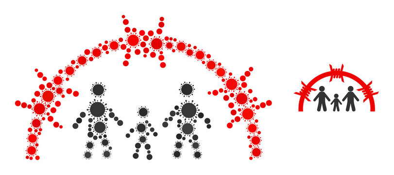 Family jail dome mosaic icon. Vector mosaic is created with scattered bacilla elements. Covid-2019 mosaic family jail dome icon. Family jail dome mosaic for pandemic images.