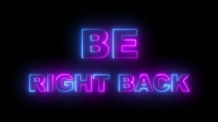 glowing neon Be right back text icon animation on black background. be right text back screen, Glowing Be right back text neon animation. 4k motion video.